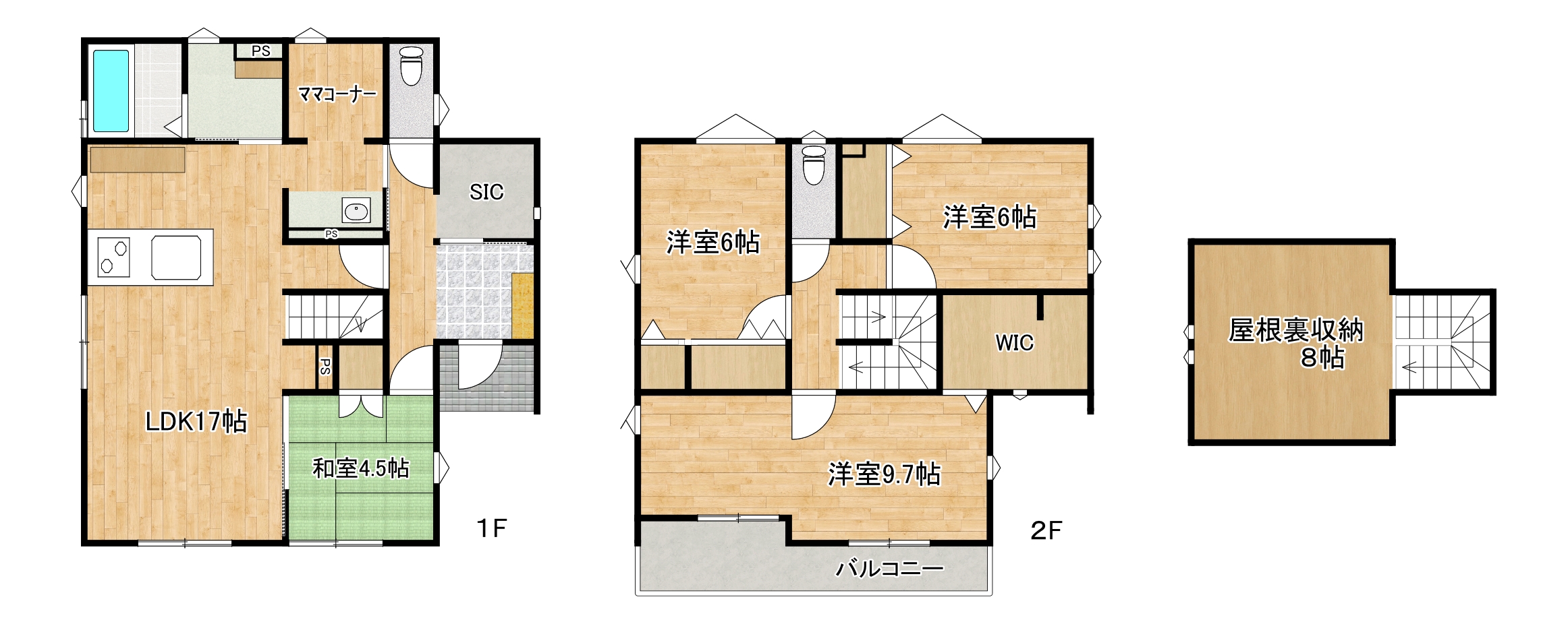| 設備等 | 主な設備等 オール電化・Z空調・極楽加湿・エコキュート・フラット対面キッチン・食器棚・食器洗い乾燥機・玄関システムキー(電池式)・トイレ2か所・カーポート・ウッドデッキ・土間収納・WIC・SIC・ママコーナー |