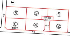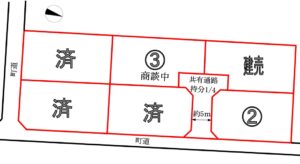 令和7年7月造成工事(上下水道引込含む)完了。 【③商談中④⑤⑥ご成約済み①建売用地】 |